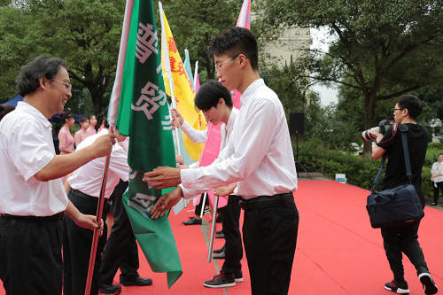启动仪式上,在我校学子献上精彩的歌舞表演后,省政协副主席孙景淼为浙江长征职业技术学院与浙江厚启律师事务所、盈科杭州律师事务所开展校所共建“大学生法治教育基地”授牌。我校普法宣传志愿队的学生代表们上台接受授旗、赠书。现场还举行了“法治进校园 共筑中国梦”志愿承诺签名活动,同学们纷纷签名,承诺做新时代的守法大学生。