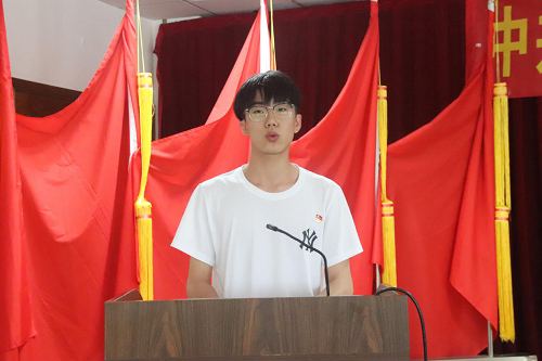 大会在庄严的国歌声中拉开帷幕。首先,张红老师带领全体新党员面向党旗,举右手握拳,庄严宣誓。18商务系移动商务的章驰宇同学作为新党员代表发言。他倡议学生党员“坚定理想信念,发挥党员先锋模范作用,在为人民服务中茁壮成长,在艰苦奋斗中砥砺前行,在实践中增长本领,做到不惧风雨、勇担重任,让青春在党和人民最需要的地方绽放绚丽之花。”
