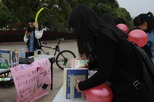 4月2日中午12时,与书为乐,香颂趣味——读书月趣味活动在图书馆前如期举行。