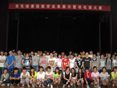羽毛球课程自成为院级重点课程以来,课程组全体教师深受鼓舞,以提高教学质量为中心,先后进行了一系列教学改革:深化课程体系和教学内容改革,规范教学过程,统一教学大纲,组织相互听课和教学经验交流,进行教材、课件、网站等多种形式的教学资源建设等以提高教学质量。 羽毛球技能大赛作为课程教学成果展示的重要组成部分,比赛设男女双打、男女单打四项,分别取前八名,在前期大力宣传下,不仅选修羽毛球课程的同学积极报名,而且吸引了许多不同年级不同课程的羽毛球爱好者参与,先后有316人次报名参加比赛。