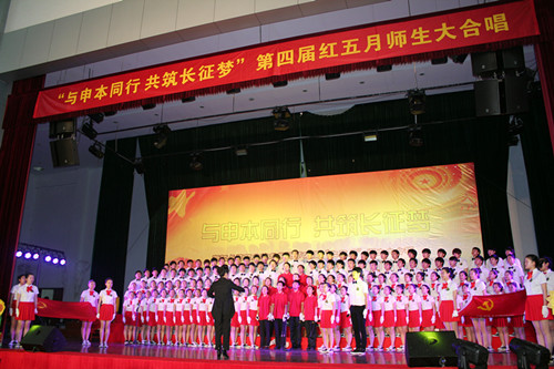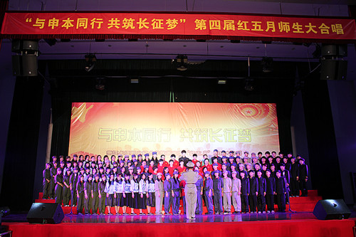 为纪念中国共产党成立九十二周年,中国共青团建团九十一周年,“五四”运动九十四周年,同时增强同学的爱国精神和集体荣誉感,弘扬“五四”精神,5月8日下午2点以“与申本同行,共筑长征梦”为主题的第四届“红五月”师生大合唱在体育馆准时开唱。