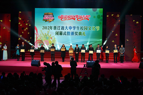 为庆祝历时七个月的浙江省大中学生校园文化节圆满成功,12月28日晚,浙江理工大学体育馆举行了浙江省大中学生校园文化节闭幕式暨颁奖典礼晚会。我院获奖作品情景剧《成长历程》特邀参加闭幕式。