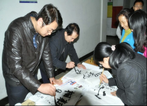 商务系首届文化艺术节已经结束,但商务系全体教师培养学生高雅情操、文艺情怀的步伐远未停止。艺术节结束前,商务系主任李庆海老师、党总支副书记姚瑜滢老师、团总支书记易烈翔老师、教学秘书李慧刚老师携全体班主任及在场学生现场各完成一幅书画作品。体现了商务系全体教师团结一致,通力打造最具特色的商务系文化氛围的决心,并将之付诸实践。