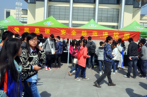 为提高广大师生的安全法制意识和安全防范能力,11月1日学院保卫处与留下综治办、留下派出所在体育馆前共同举办以“警民恳谈,安全防范进校园”为主题的安全知识宣传活动。学院党委副书记、副院长王其军出席了此次教育宣传活动。本次活动以现场咨询、发放宣传手册,安全防范知识海报展示、毒品模拟样品展示等多种形式向我院学生进行安全教育。留下综治办和派出所的同志为我校学师生讲解校园安全方面的问题,同时解答我院师生在校园安全问题上存在的疑惑。此次活动在进一步加强了我校师生对安全防范知识的了解,进了一步推进了我校深化“平安校园”建设工作的开展。
