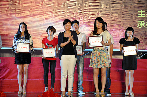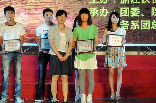 杭州团市委学校部部长茹意为获奖代表颁奖