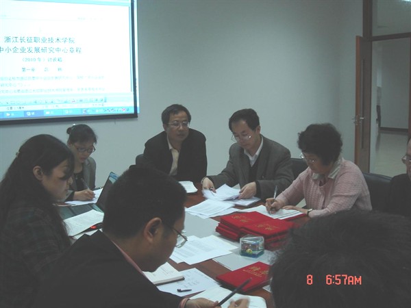 浙江民营中小企业发展研究中心秘书长苏若葵老师宣读了中心的章程以及中心成员的考核办法,会上,研究中心成员通过举手表决,通过了章程议案和考核办法。