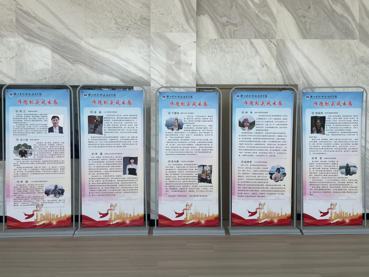 为树立优秀教学典型,激发广大教师秉持教育初心,坚持立德树人,不断提高教学能力和育人水平,学校对评选出的19位师德标兵进行了表彰,并通过学校网站、易拉宝展架、微信公众号等多种平台,多种形式展示优秀教师风采,切实讲好学校教书育人的好故事。
