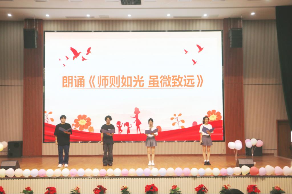 活动现场师生们通过歌曲、舞蹈、朗诵等演出形式,展示了学校教师及学生的多才多艺,表达了师生间的深切情感,展现了良好的师生风貌,活动现场氛围热烈。