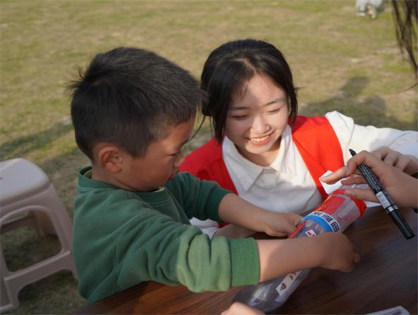 比赛中,建工学院的“小鲁班”们与辖区小朋友们自由组队,随着主持人发出比赛开始的号令,他们化身火箭建造师,用生活中简单易得的碳酸饮料瓶,自己设计、制作水火箭。热情高涨的他们以独具匠心的想法,呈现出精妙的作品。他们分工明确,各尽其职,大家配合默契,有条不紊地完成了火箭制作。制作过程中,“小鲁班”们还耐心地向小朋友们解释其中蕴含的科学原理,让孩子们在玩中学,在学中玩。