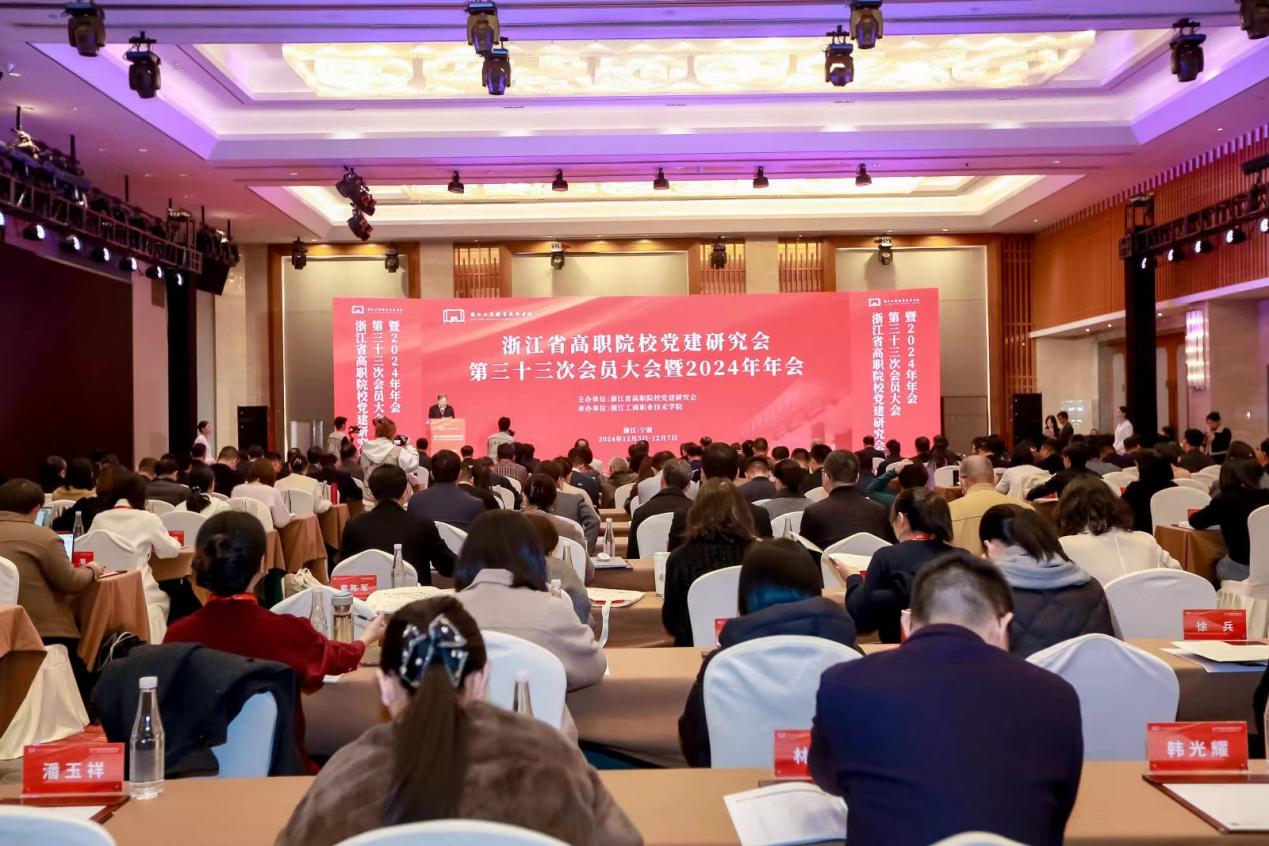 近日,由浙江省高职院校党建研究会主办的浙江省高职院校党建研究会第三十三次会员大会暨2024年年会在宁波顺利召开,全省50所高职院校200余名代表参加会议。研究会理事、学校党委副书记吴有恩和我校获奖代表参会。