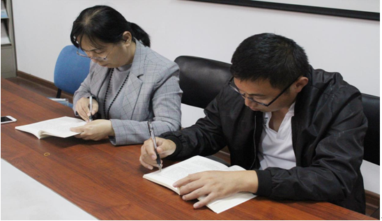 为强化全体党员教师政治素养,将学习教育贯穿始终,会计系党员教师于11月4日下午在实训楼南213开展了以“教育报国守初心,立德树人担使命;对标检视找差距,奋进有为抓落实”为主题的学习活动。在党总支书记杨军老师的带领下,全体党员教师共同学习了《习近平关于“不忘初心、牢记使命”论述摘编》,并诵读《把政治建设摆在首位,不断增强“四个意识”、坚定“四个自信”、做到“两个维护”》这一专题。
