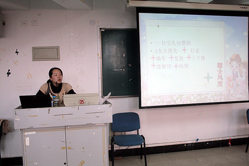 贾老师为学生讲解日常生活礼仪文化知识、个人的仪容仪表礼仪以及仪态服饰装扮礼仪等知识