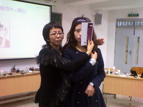 讲座开始后,蔡女士首先为同学们作了关于面部保养知识的介绍,教大家正确如何护理自己的肌肤。随后,严女士为同学们介绍了关于化妆方面的知识,并现场邀请了三位女生上台作为模特,为同学们现场演示了化妆的全过程,让同学们对于生活妆有了一个直观的了解。
