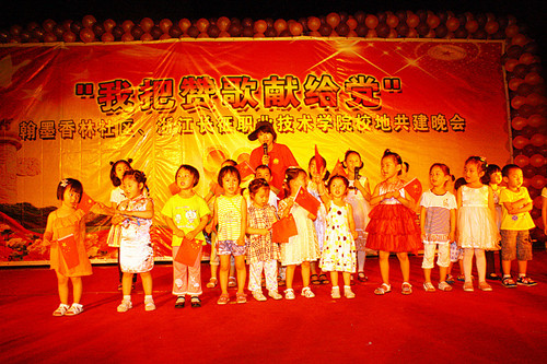 6月22日晚7点,由我院和翰墨香林社区共同主办,学院团委承办的“我把赞歌献给党” 庆祝建党九十周年大型主题晚会暨翰墨香林社区、浙江长征职业技术学院校地共建联欢晚会在翰墨香林社区广场隆重举行。出席本次晚会的有留下街道妇女主席、计生文教科科长孙凤娟,留下街道文化站站长钱晓娟,文化站领导周建国,留下街道司法所所长仓浩青,留下街道党办专干王连碧,翰墨香林支部书记、居委会主任陶晓莹以及我院副院长贺旭辉教授。