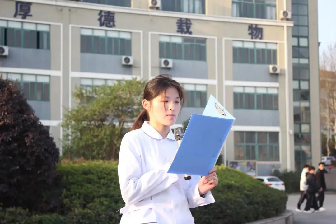 22护理5班王灵琰同学作为学生代表发言,她表示,作为生在红旗下长在春风里的新时代大学生,一定会接好历史的交接棒,把握好生命的每一天。