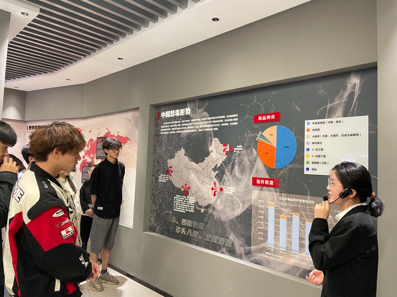 在警官的带领下,师生们参观了戒毒所警示教育馆,了解了毒品的发展历程,毒品的种类和毒品的危害,并近距离观察了冰毒、鸦片、摇头丸等毒品的形态。