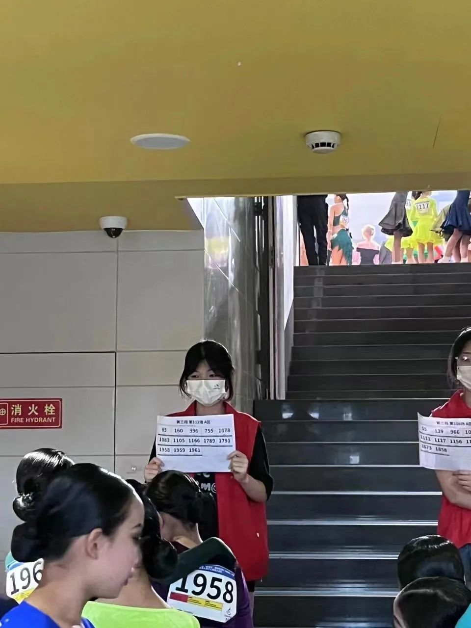 在馆内负责人的带领下,同学们承担了维持参赛选手的秩序、检录、场内机动、出口处疏通、摆放奖杯、颁奖等工作任务。志愿者们有序组织选手们排队检录,并时刻关注选手们的需求以提供帮助,确保活动有序高效地进行。