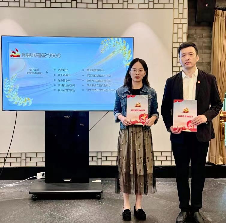 为推动高校党建“四个融合”,更好地发挥党组织的战斗堡垒作用和党员的先锋模范作用,近日,管理学院党总支与留下街道和家园南社区党总支签订合作协议,共同开启党建联建新篇章。管理学院党总支副书记丁慧瑛、总支委员潘琦琛、和家园南社区党总支书记陈国民,以及其他9家党建共建合作单位的支部书记和党员代表参加了此次签约仪式。仪式由陈国民主持。