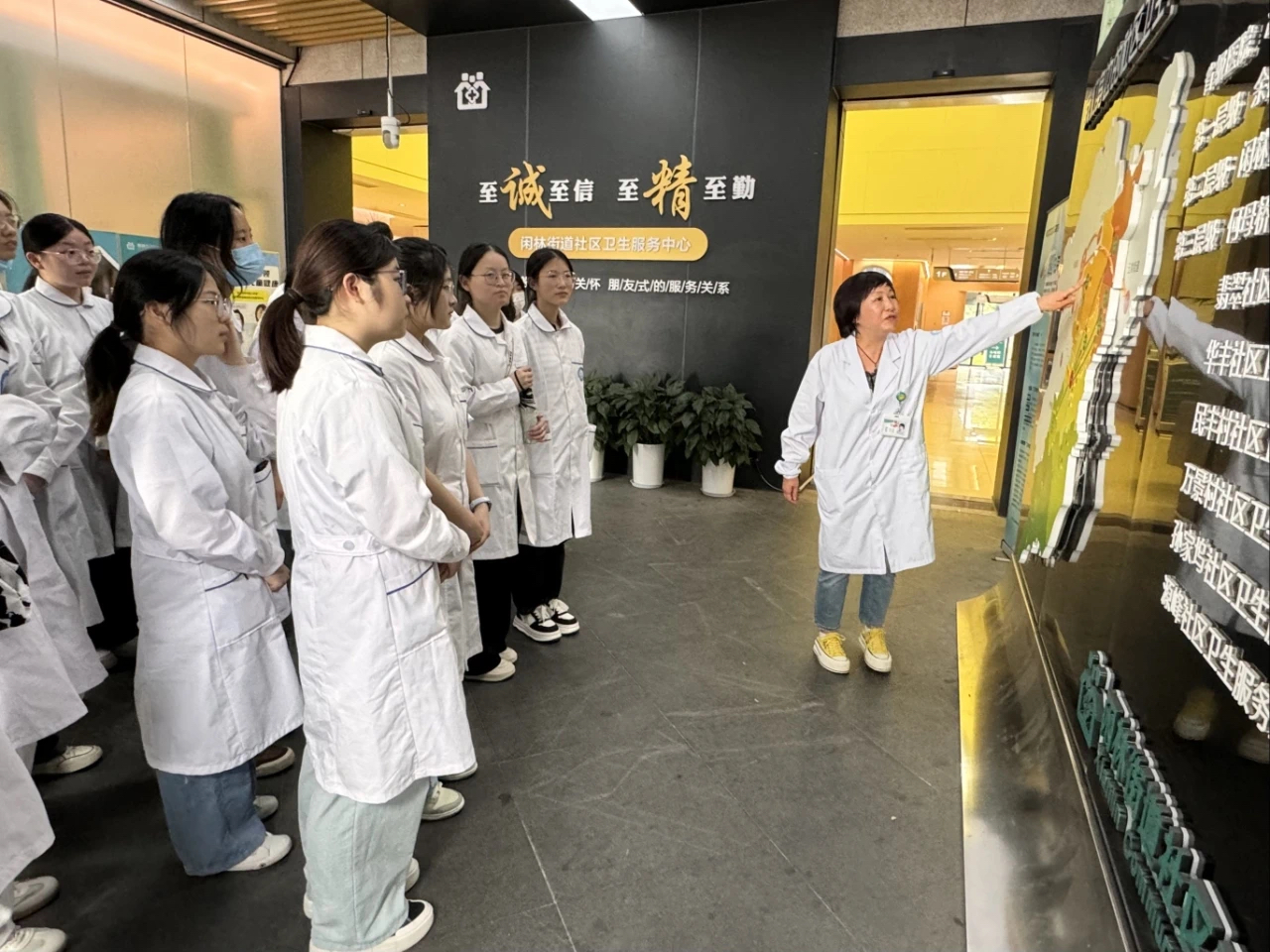 社区医院作为守护居民健康的前沿阵地,是培育护理人才全科思维,构建基层医疗认知的重要平台。本次见习采用“科室观摩+实操体验+职业对话”三维模式,多维度展现护理职业的丰富内涵和社会价值。在医护人员引导下,同学们有序参观了内科、外科、妇产科等科室,深入了解分级诊疗制度下社区医院的运作机制,重点学习慢性病管理、家庭护理等特色服务内容。通过实地观摩,同学们深刻认识到基层护理在公共卫生体系中的重要性。