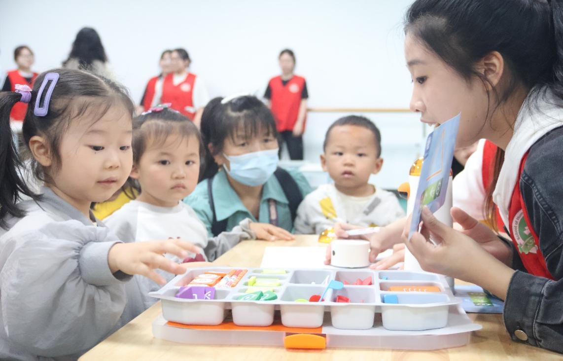 活动现场精彩纷呈,多个技能展示与互动体验区成为焦点。学前教育、婴幼儿托育服务与管理专业的学生们化身专业“小老师”,运用扎实的专业知识,设计出一系列兼具趣味性与专业性的项目,学生们以饱满的热情和专业的素养,向到场的嘉宾、行业专家及幼儿家庭展示了扎实的实操技能、创新的活动设计能力和充满爱心的职业素养。在他们的悉心引导下,小朋友们积极探索、动手实践,现场充满欢声笑语。