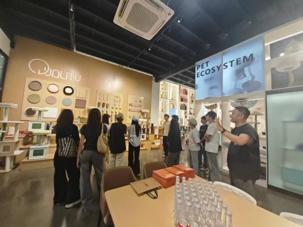 参观过程中,聂金用风趣的语言为来访师生讲解。他系统介绍了宠物家具的生产流程、市场前景及跨境电商运营模式,并结合实际案例,分享了行业经验与人才需求。他表示,扎实的专业技能是企业发展的核心驱动力,并鼓励同学们珍惜在校时光,积极参与实践,提升综合能力。